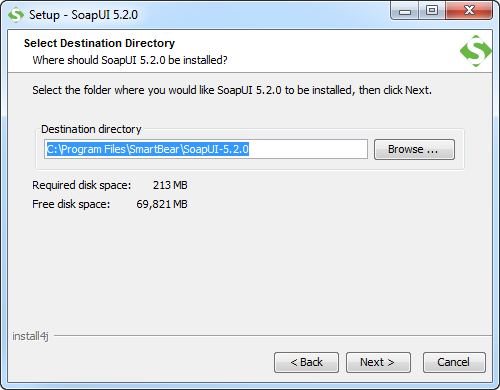 接受并點(diǎn)擊【下一步】,你就可以選擇目標(biāo)文件夾,默認(rèn)的位置是C:\ProgramFiles\SmartBear\SoapUI-5.2.0,但是你可以更改。