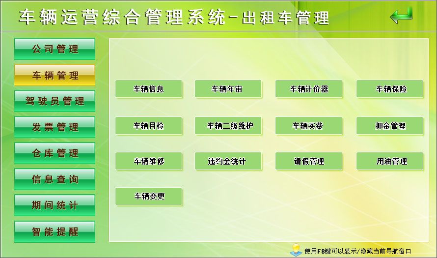 一、出租車管理:出租車車輛信息、違約金統(tǒng)計(jì)、車輛買費(fèi)、發(fā)票管理等二、農(nóng)客管理:農(nóng)客車輛信息、駕駛員管理、車輛保險(xiǎn)等