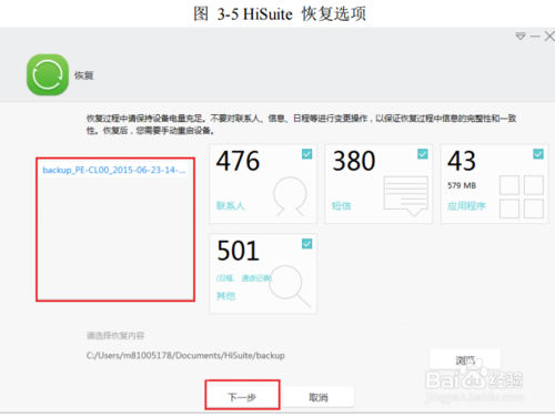 HiSuite 恢復備份