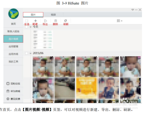 在首頁,點擊【圖片視頻>圖片】頁簽,可以對圖片進行新建、導出、刪除、刷新。