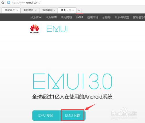 首先搜索并打開EMUI官方網站,點擊首頁的【EMUI下載】