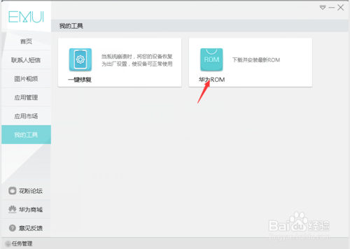 打開華為手機助手,左側選擇【我的工具】,右側點擊【華為rom】