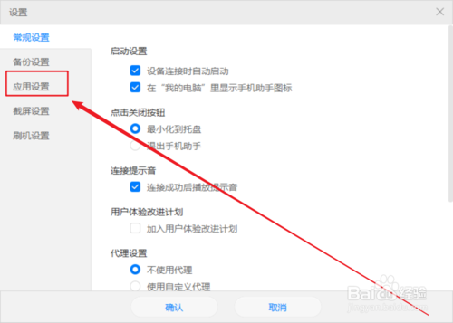 然后在彈出的【設置】頁面的左側點擊【應用設置】