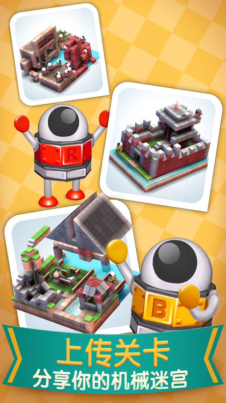 1、風格可愛,呆萌機器人玩轉(zhuǎn)迷宮2、全3D迷宮,50個風格迥異的場景