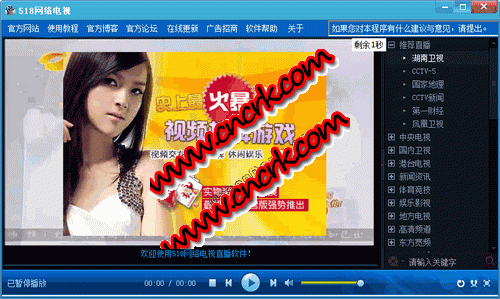 518網(wǎng)絡電視 V1.2 綠色免費版 518網(wǎng)絡電視是一款免費在線觀看電視軟件,現(xiàn)收錄了國內外500多套優(yōu)質網(wǎng)絡電視節(jié)目,其軟件界面簡潔易用,不含任何流氓插件。本軟件能接收到,國內,國外,港澳臺等各地的頻道,并且速度穩(wěn)定,不占內存,值得您的信賴!