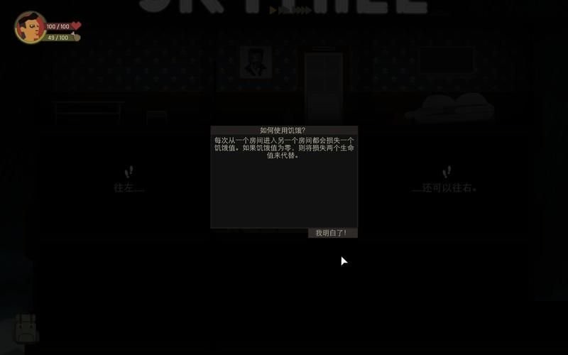 每次從一個房間進(jìn)入另一個都會損失饑餓值。
