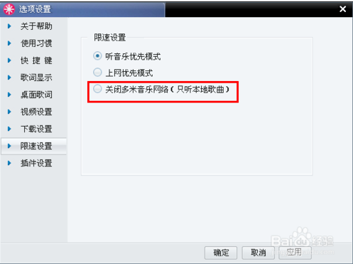 關(guān)閉多米音樂網(wǎng)絡(luò)是徹底關(guān)掉多米音樂盒的音樂下載功能,選擇這項(xiàng)以后,你的音樂盒將關(guān)閉網(wǎng)絡(luò)傳輸功能,也就是你的多米音樂盒不能聽網(wǎng)絡(luò)音樂了,但是依舊可以聽本地音樂,所以不會(huì)再占用你的網(wǎng)絡(luò)
