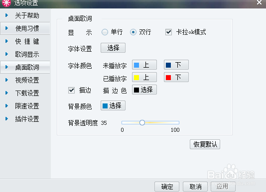 最后我們可以在設(shè)置一下桌面歌詞,方法如上