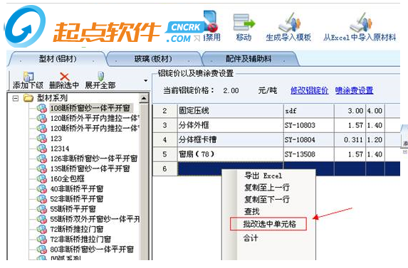 4、這里可以建立材料的清單,可以就將您設(shè)計門窗需要的材料以及價格數(shù)據(jù)記錄