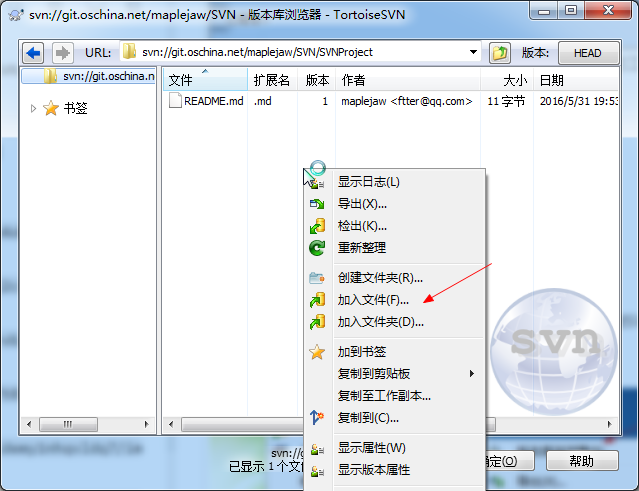 記住選擇增加把它加入到版本庫(kù)里面去。