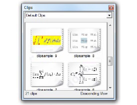 剪輯窗口是保存經(jīng)常使用的方程式剪輯的容器。使用“剪輯”窗口有助于最大限度地減少煩人的重復性輸入過程。要在“剪輯”窗口中添加公式,請從“編輯器”窗口中選擇一個公式,然后將其拖到“剪輯”窗口或按Ctrl+M.創(chuàng)建公式剪輯后,會自動按以下格式分配名稱:編輯器窗口標題+序列號。如果您想更改剪輯的名稱,請用鼠標右鍵單擊公式,然后選擇“重命名”。然后輸入一個新的名字。