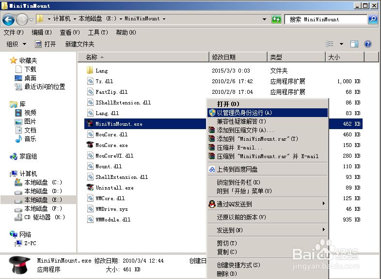 綠色軟件,無需安裝,總大小4M。總共有包含10幾個(gè)文件。MiniWinMount.exe是主程序。