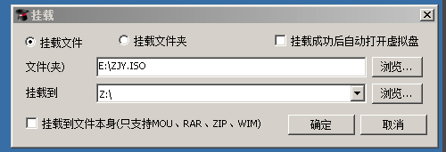 將F盤下ZJY.ISO這個(gè)映像裝載一下。任務(wù)欄軟件小圖標(biāo)提示裝載成功。