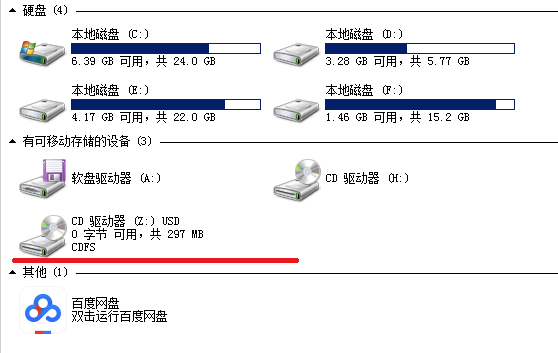 進(jìn)入資源管理器,就是這個(gè)Z盤。光盤已經(jīng)被加載,點(diǎn)擊光驅(qū)就可以進(jìn)入了。