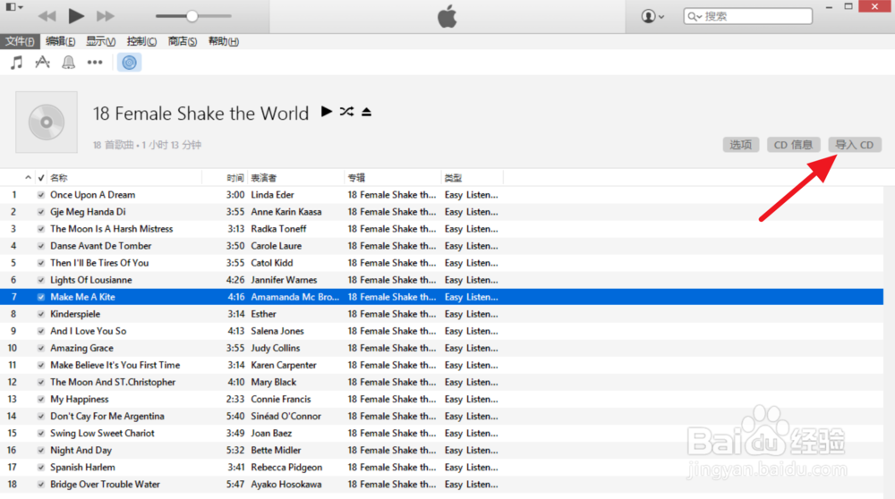 就會(huì)出現(xiàn)下面的頁面,這時(shí)候音樂還沒有導(dǎo)入iTunes資料庫,點(diǎn)擊右上方的【導(dǎo)入CD】