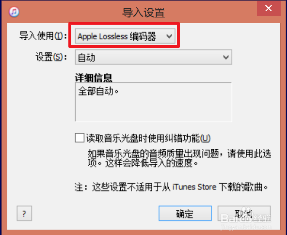 【導(dǎo)入使用】后面選擇【Apple Lossless編碼器】,點(diǎn)擊【確定】即可開始轉(zhuǎn)換