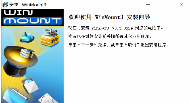 安裝步驟1、從本站下載winmount后,打開點(diǎn)擊下一步