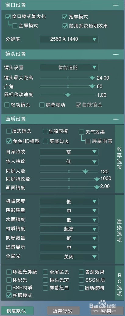 效率選項:首先“角色HD模型”這一選項和實(shí)際不符,寫的“自身角色采用HD模型”實(shí)際上其他人也是HD模型,希望出一個真·只美自己的選項。