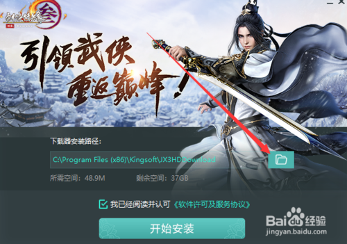 接下來打開下載的文件,點(diǎn)擊文件夾選項選擇下載安裝位置,一定要注意盡量不要放在C盤。