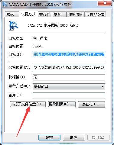②:同樣右擊桌面上的CAXACAD電子圖板2018快捷方式,點(diǎn)擊屬性——打開(kāi)文件位置即可