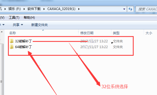 2、打開(kāi)下載并解壓后的破解文件夾,根據(jù)自身的系統(tǒng),選擇32位破解補(bǔ)丁或64位破解補(bǔ)丁程序,由于小編系統(tǒng)是64位操作系統(tǒng),所以這里小編選擇的是64破解補(bǔ)丁
