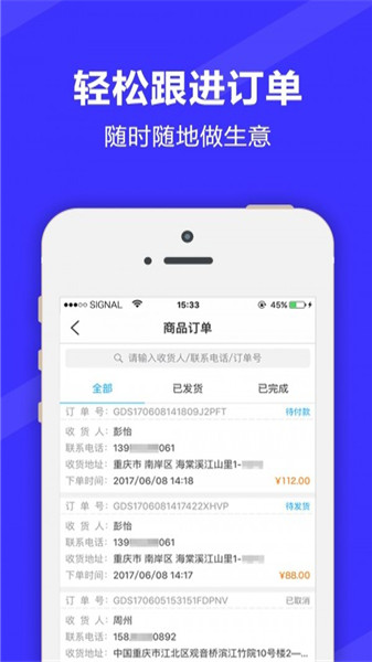 1、一鍵訂單管理隨時(shí)隨地做生意