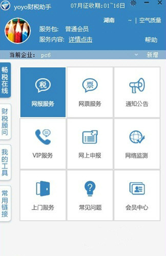 1.暢稅在線網(wǎng)報(bào)服務(wù),網(wǎng)票服務(wù),網(wǎng)上申報(bào),網(wǎng)絡(luò)檢測(cè),通知公告,vip服務(wù),會(huì)員中心等多項(xiàng)功能,讓您輕松快捷的解決財(cái)稅問(wèn)題。
