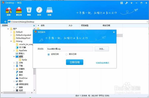 2、選擇“最快壓縮”,快壓將會在最短時間內(nèi)完成文件的壓縮。不過在這種模式下壓縮出來的文件,其壓縮比并不會很高。
