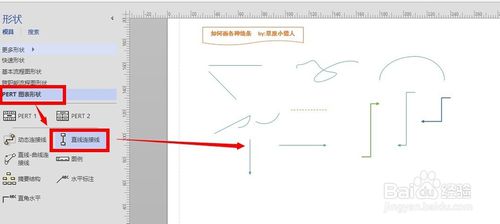 上面是最基本的線條與箭頭的畫法,還有一種是通過其他模版里面尋找箭頭,直接拖入到自己的繪圖區(qū)域即可。其實(shí),第一種方式已經(jīng)完全滿足使用了。