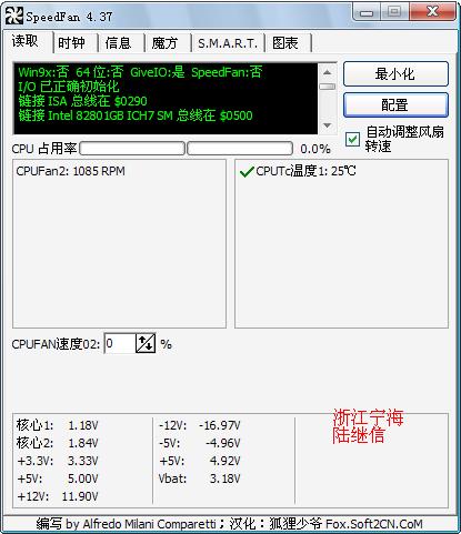 SpeedFan是一款硬件監(jiān)控工具,可以魔方圖顯示 CPU 溫度、電壓與主頻、占用率,硬盤溫度與健康,風(fēng)扇轉(zhuǎn)速,電池電量,開機(jī)時(shí)間等重要系統(tǒng)信息。它的特色功能是可根據(jù)系統(tǒng)溫度更改風(fēng)扇轉(zhuǎn)速。還具備讀取硬盤溫度與 SMART 信息,更改 FSB 速度(軟超頻/軟降頻),報(bào)告部分 nVidia 顯卡溫度、電壓等特性。該軟件每次更新都會(huì)對(duì)包括 CPU 和主板等大件在內(nèi)的硬件新增/改進(jìn)支持