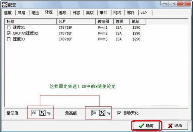 2、在SpeedFan里把速度設(shè)置到60%,怎么一開機(jī)又到了100%?