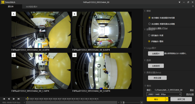 DetuStitch得圖全景拼接軟件是Detu推出的一款專業(yè)強(qiáng)大的全景拼接軟件。DetuStitch主要與得圖F4全景相機(jī)配套,能夠自動識別F4相機(jī)內(nèi)容,一鍵導(dǎo)出全景視頻及圖片,同時(shí)提供相機(jī)拼接和文件拼接2種方式模式,相對傳統(tǒng)的拼接軟件更加容易操作,大大提高了提升圖像拼接的效率。