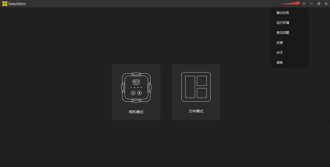 軟件安裝后打開界面,有相機(jī)拼接和文件拼接2種方式模式。相機(jī)拼接是指內(nèi)容拍攝完畢后,拼接軟件直接從相機(jī)里面導(dǎo)入內(nèi)容進(jìn)行拼接,快速方便,對于已經(jīng)放在電腦種的內(nèi)容可直接選擇文件模式。