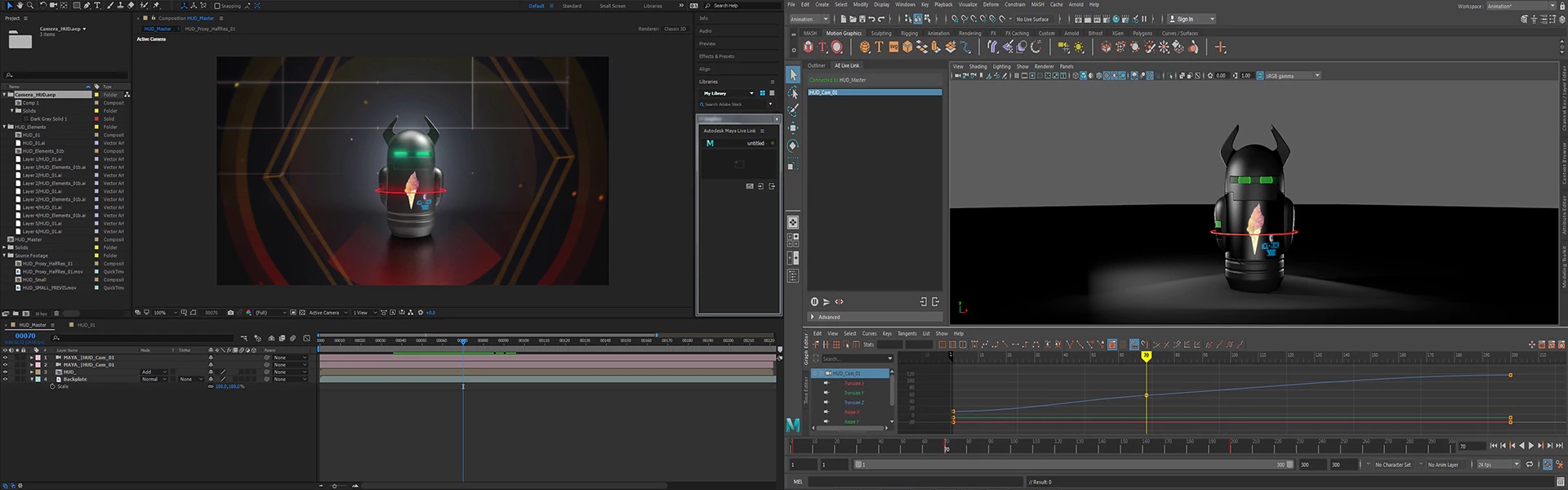 在 Maya 和 Adobe® After Effects® 之間創(chuàng)建實(shí)時(shí)鏈接,以便同時(shí)進(jìn)行實(shí)時(shí)更改和查看場景