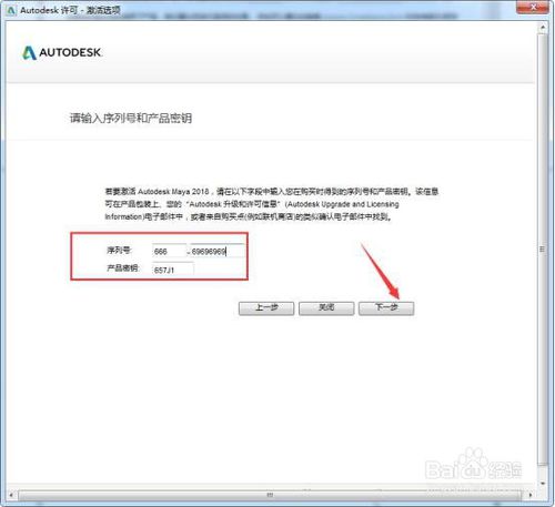 提示請輸入產(chǎn)品序列號和產(chǎn)品密鑰,小編給大家準(zhǔn)備一組通用的666-69696969,657J1,輸入進(jìn)去之后點(diǎn)擊下一步。