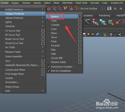 點(diǎn)擊polygons primitives選項(xiàng),在其下拉菜單里找到sphere選項(xiàng),如圖所示: