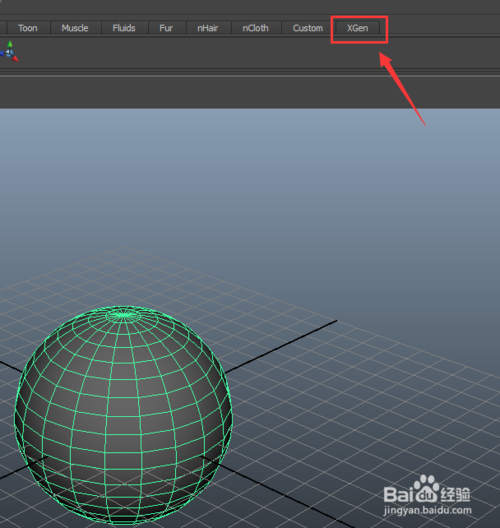 點(diǎn)擊sphere選項(xiàng),在透視圖里創(chuàng)建一個(gè)球體并在菜單里找到xgen選項(xiàng),如圖所示: