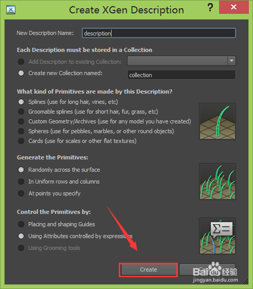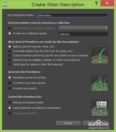 點(diǎn)擊xgen選項(xiàng),在其內(nèi)選擇create xgen description選項(xiàng),點(diǎn)擊create xgen description彈出其對話框,如圖所示: