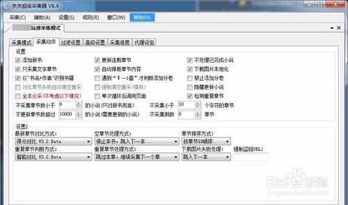 采集動(dòng)作這里,建議大家不要選檢測(cè)重復(fù)章節(jié)。否則會(huì)有好多內(nèi)容章節(jié)采集不到!有點(diǎn)相似的他就給你過(guò)濾了,真心很坑