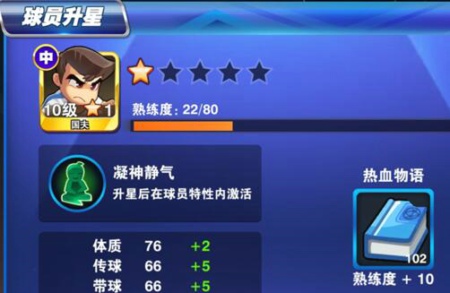 球員升星進(jìn)也會(huì)帶來(lái)一定的屬性(傳球、帶球、搶斷、力量、服從)提升,但更為重要的是進(jìn)階后可以解鎖球員特性。特性是一種強(qiáng)大的能力,解鎖特性將給球員帶來(lái)質(zhì)的飛躍。