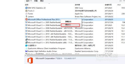 4、在右側(cè)欄找到office2013,右擊選擇更改