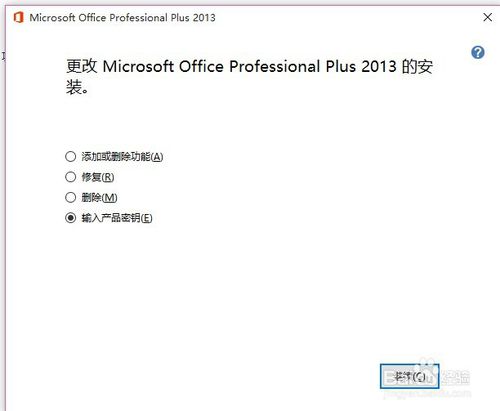 6、輸入產(chǎn)品密鑰,點(diǎn)擊繼續(xù)