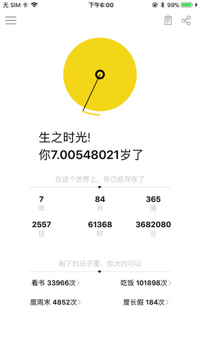 生之時光app可以設(shè)置出生日期。生之時光app預(yù)設(shè)壽命長短,并開啟倒計。