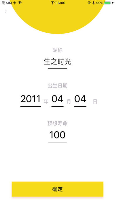 生之時光app是一款能夠記錄人類由生到死的時間軟件,從你選定出生日期的那一刻開始,你的生命就已經(jīng)開始進入倒計時,每一分每一秒對于你來說都顯得彌足珍貴,珍惜你眼前的時光,不要看著它白白流失,在有限的日子里,達成你的任務(wù)目標(biāo)。