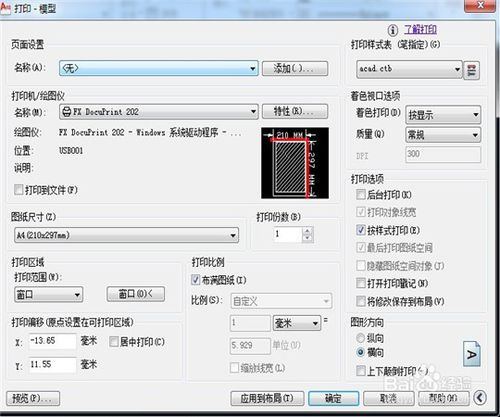 6、在"打印-模型"窗口中,在右上角的“打印機(jī)樣式表”中找到適合的打印樣式,在“打印范圍”中找到“窗口”,這時(shí)候就可以窗口選擇打印的圖紙。