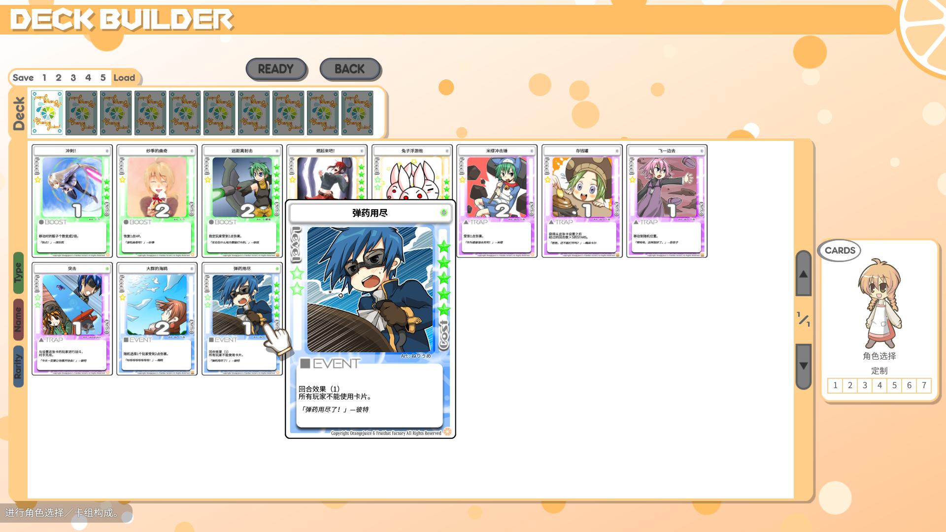 游戲開始前會進(jìn)入如下的組卡界面