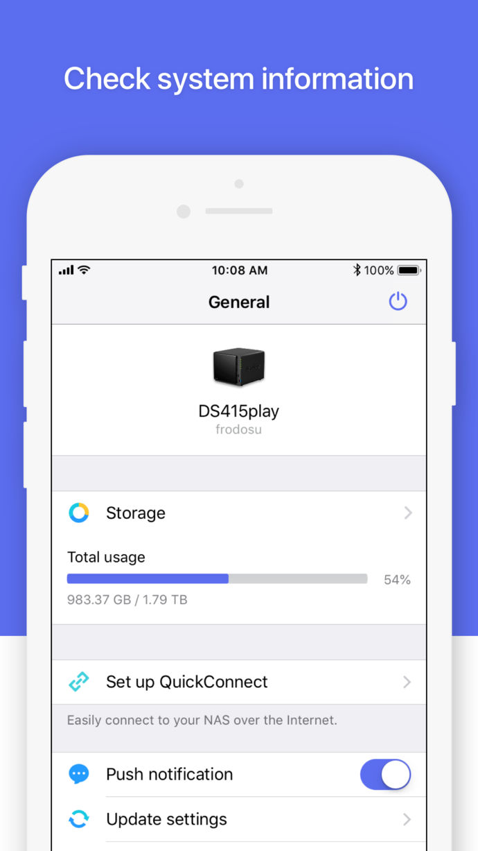 群暉管家app讓您可以設(shè)置和管理您的 Synology NAS、向您發(fā)送 NAS 相關(guān)通知并帶領(lǐng)您認(rèn)識(shí) Synology 應(yīng)用程序。可以直接從手機(jī)訪問(wèn)所有這些功能,因此通過(guò)群暉管家可告別復(fù)雜的設(shè)置和管理*您必須有 Synology NAS 才能運(yùn)行此應(yīng)用程序