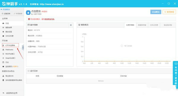 1、 打開創(chuàng)建的爬蟲,進入 打開點選面板