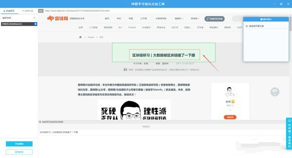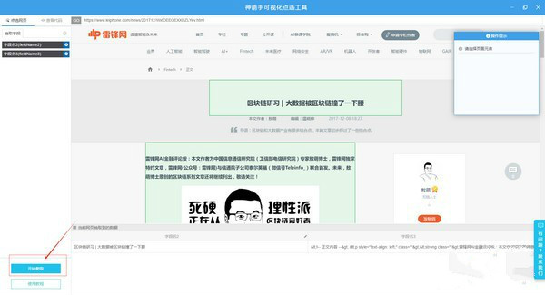 然后,在顯示的網(wǎng)頁內(nèi)容中,點擊選擇要采集的數(shù)據(jù),比如選擇采集文章的標題和內(nèi)容: