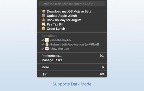 TaskTab Mac版轉(zhuǎn)為macOS設(shè)計(jì)的一款漂亮的本地應(yīng)用,支持光明和黑暗模式。你可以很容易地導(dǎo)入即刻開始列表,也可以導(dǎo)出它們與他人共享。還可以選擇顯示菜單欄中剩余項(xiàng)目的數(shù)量。
